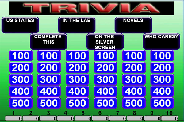 These programs allow you to perform games in the likeness of Jeopardy ®, Hollywood Squares ®, Family Feud ®, and Wheel of Fortune ®.